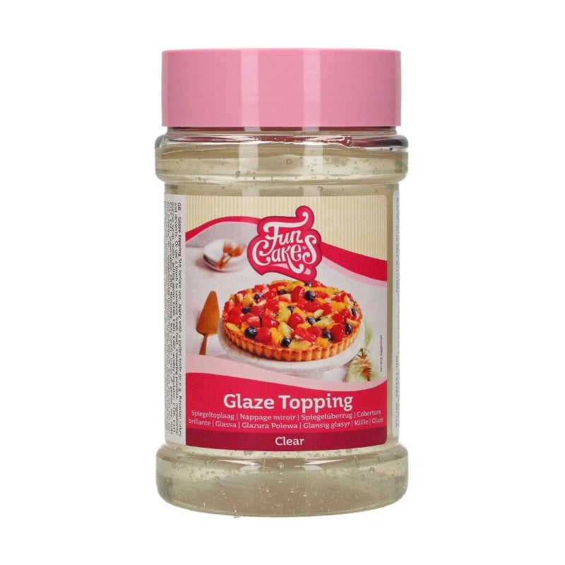 Verleihen Sie Ihren bayerischen Kuchen, Desserts und anderen Leckereien mit FunCakes Glaze Topping ein atemberaubendes, spiegelndes Finish. Dieser auch als Kaltgel bekannte Belag kann mit einem Spatel auf Desserts wie bayerischen Kuchen oder einem Pinsel aufgetragen werden, um frisches Obst haltbar zu machen. Es ist auch möglich, die Glasur einzufärben. Vor der Verwendung unbedingt mischen.