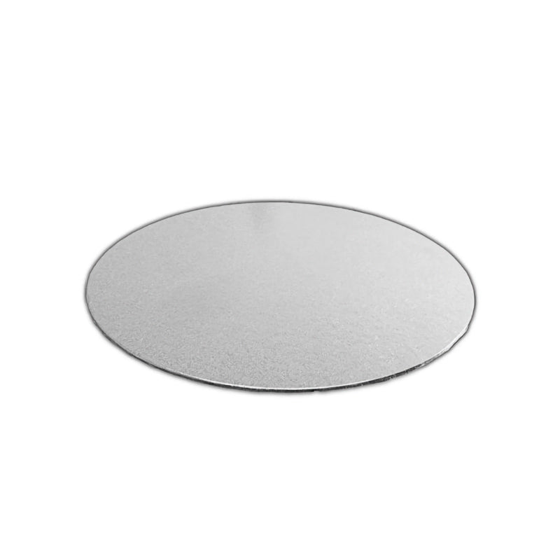 Rundes Kuchenbrett mit gedrehter Kante aus Silberfolie.