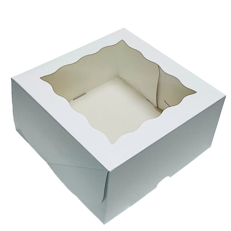 Grande boîte à gâteaux en carton avec fenêtre pour les gâteaux beaucoup plus gros ! Il mesure 255 x 255 x 153 mm avec une fenêtre en film sur deux des panneaux pour la présentation au détail. Celles-ci ne sont pas rigides et robustes comme les boîtes à gâteaux robustes , mais elles offriront une bonne protection au gâteau pendant le transport et le rendront simple à transporter.