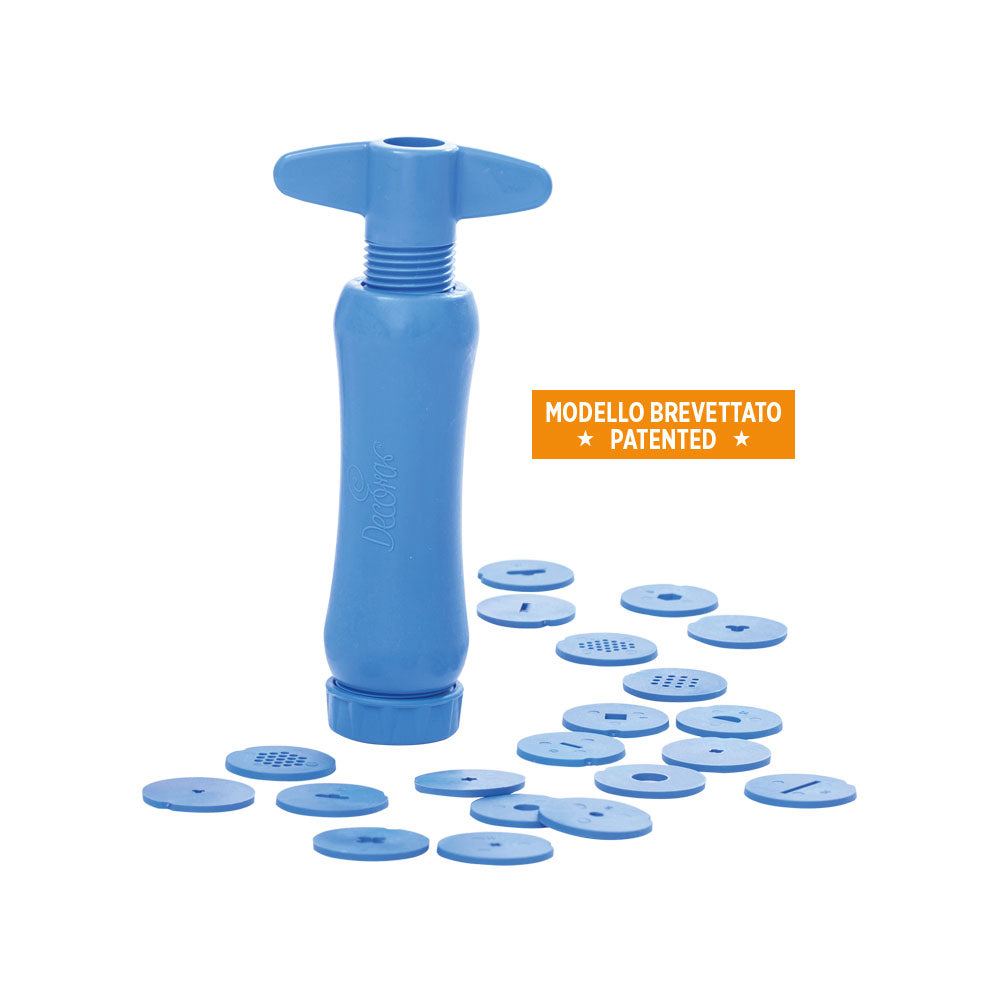 Le Decortwist transforme la pâte à sucre en cordons de formes et de tailles variées pour décorer gâteaux et friandises. Le kit comprend 20 matrices interchangeables différentes. En matière plastique recyclable pour l'alimentation, facile à démonter et lavable entièrement au lave-vaisselle.