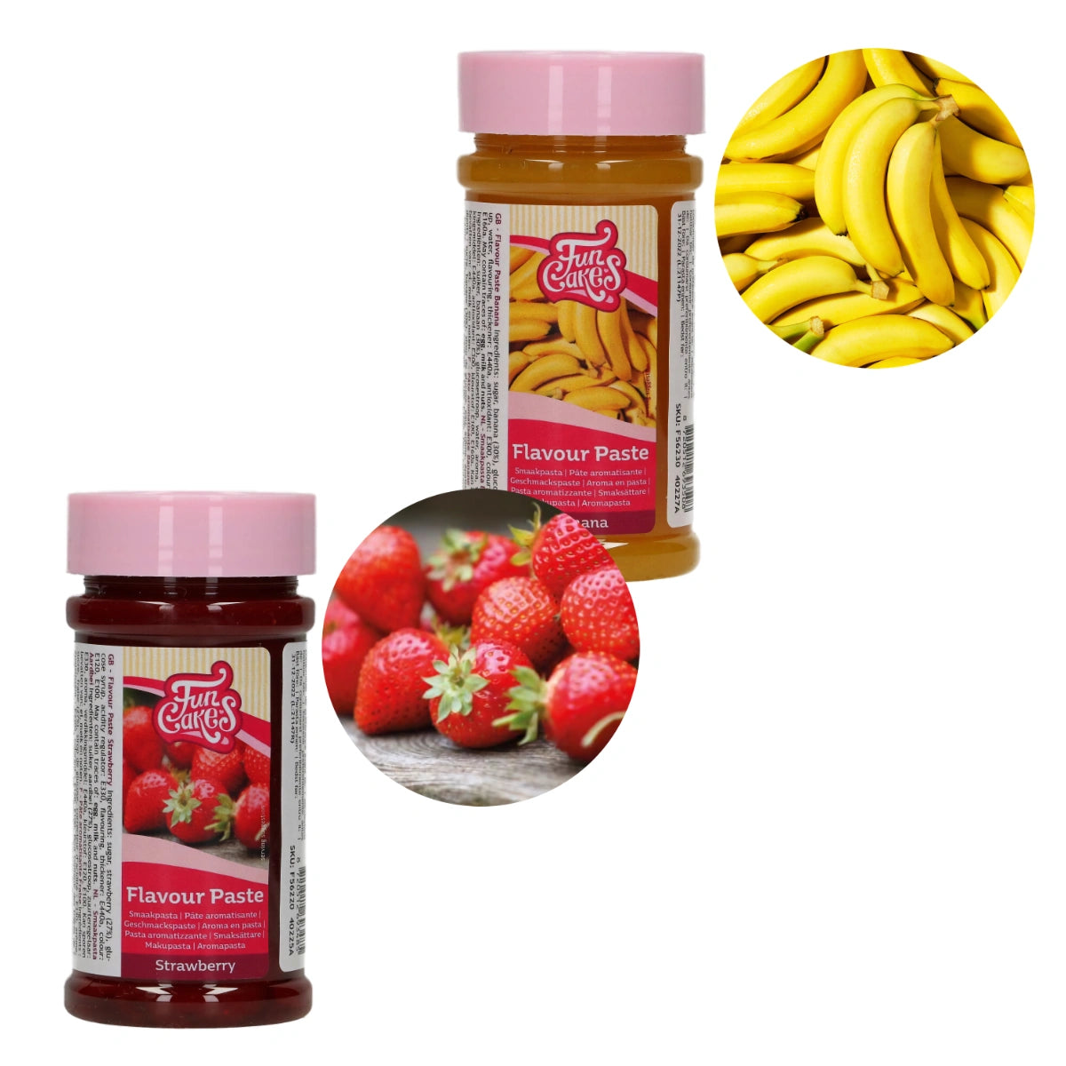 With the FunCakes flavour pastes you add a fresh fruity flavour, soft nut flavour or deep coffee flavour to your bavarois, Enchanted Cream or Buttercream. The pastes can also handle the heat of the oven, meaning you can add them to your cupcake or sponge cake batter. A surprising effect to your cake! Do you like some variation? Then always make sure to have a few flavour pastes at home.