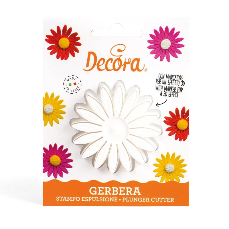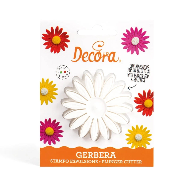 Made of plastic material suitable for contact with food. Created to make wonderful flowers in gum paste and sugar paste. In addition to cutting the gum paste in the shape of the gerbera, the mold allows you to impress the veins and details of the flowers on the surface.