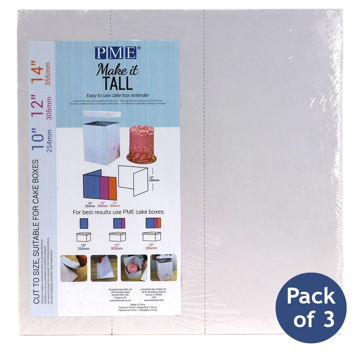 La PME Cake Box Extender est une rallonge pratique que vous pouvez utiliser pour créer une boîte à gâteaux plus haute. L'extension peut être découpée pour s'adapter aux boîtes de 25 cm, 30 cm et 35 cm. Ensemble de trois rallonges.