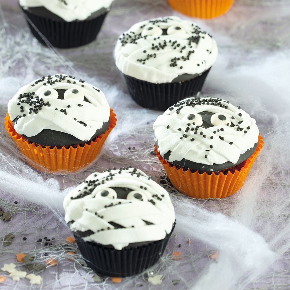 Décorations en sucre, prêtes à l'emploi. Fabriqué à la main avec des colorants d'extraction naturels. Parfait pour décorer facilement des gâteaux, cupcakes, biscuits et friandises. Décoration étonnante pour des délices de pâtisserie pour Halloween et les fêtes. Sans gluten. Pas de graisses hydrogénées.