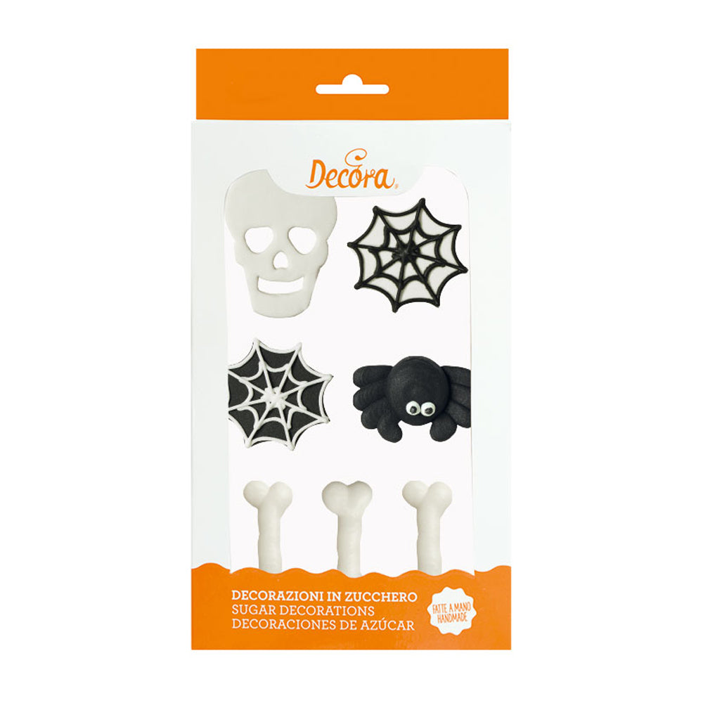 Sugar decorations, ready to use. Handmade with natural extraction dyes. Perfect for easily decorating cakes, cupcakes, cookies and treats. Gluten free. No hydrogenated fats. Pack of 6 Scary decorations is assortiment. Size : 4.5 cm