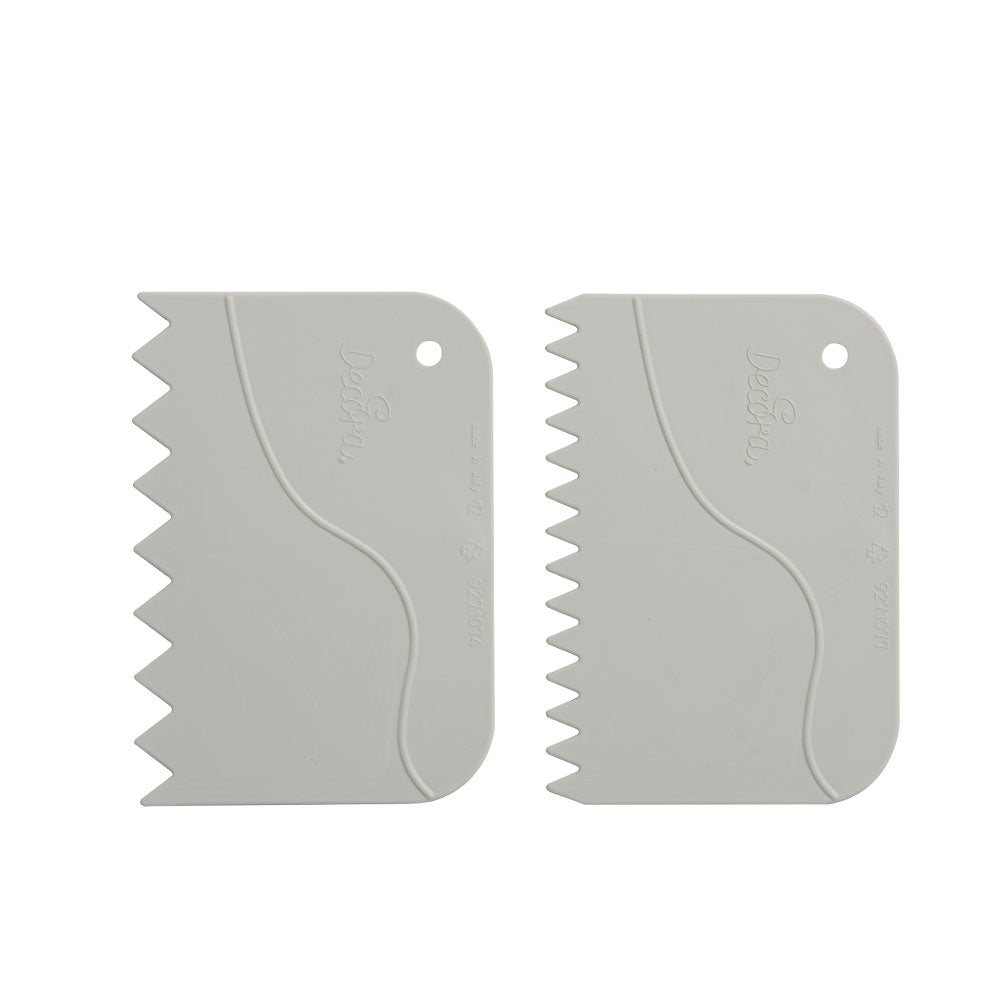 Plastic spatulas essential for processing creams, cream and chocolate. The serrated end allows the cake to be perfectly finished. The package contains 2 spatulas of 12 x 8.3 cm and 13.5 x 9.2 cm.