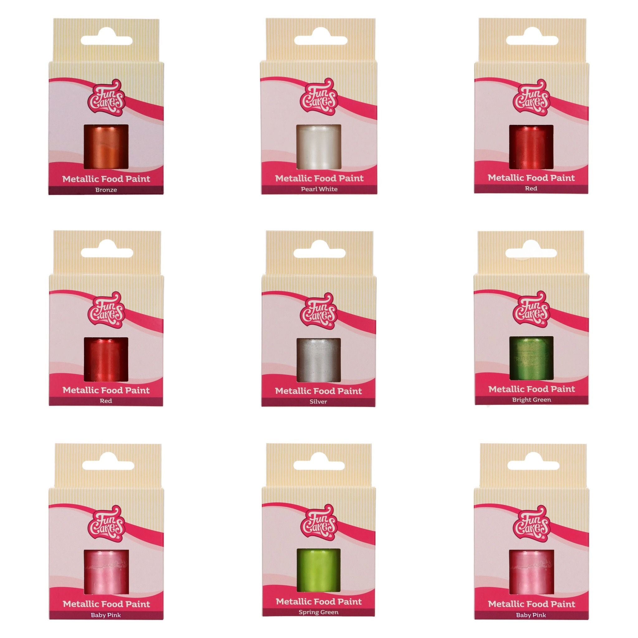 The FunCakes Metallic Food Paint Baby Pink is a 100% edible paint that is easy to use. Shake before use and then simply brush the paint directly on the surface. The pink paint dries well after use and doesn’t stick after application. Great for adding beautiful effects on fondant, marzipan, gum paste, royal icing and more.