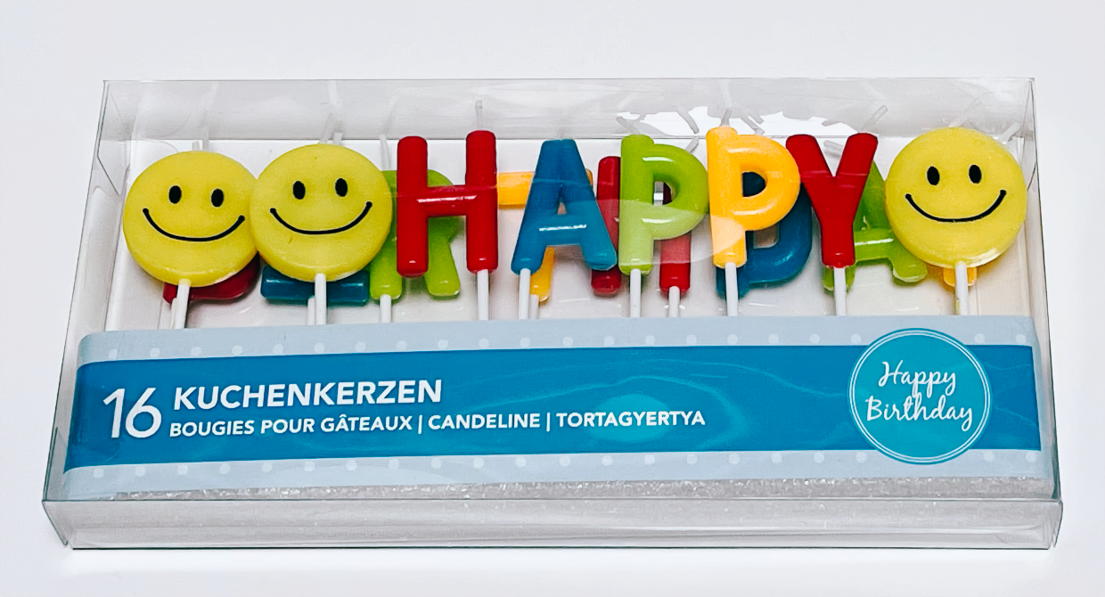 Bougies pour gâteaux Happy Birthday and Smilies.