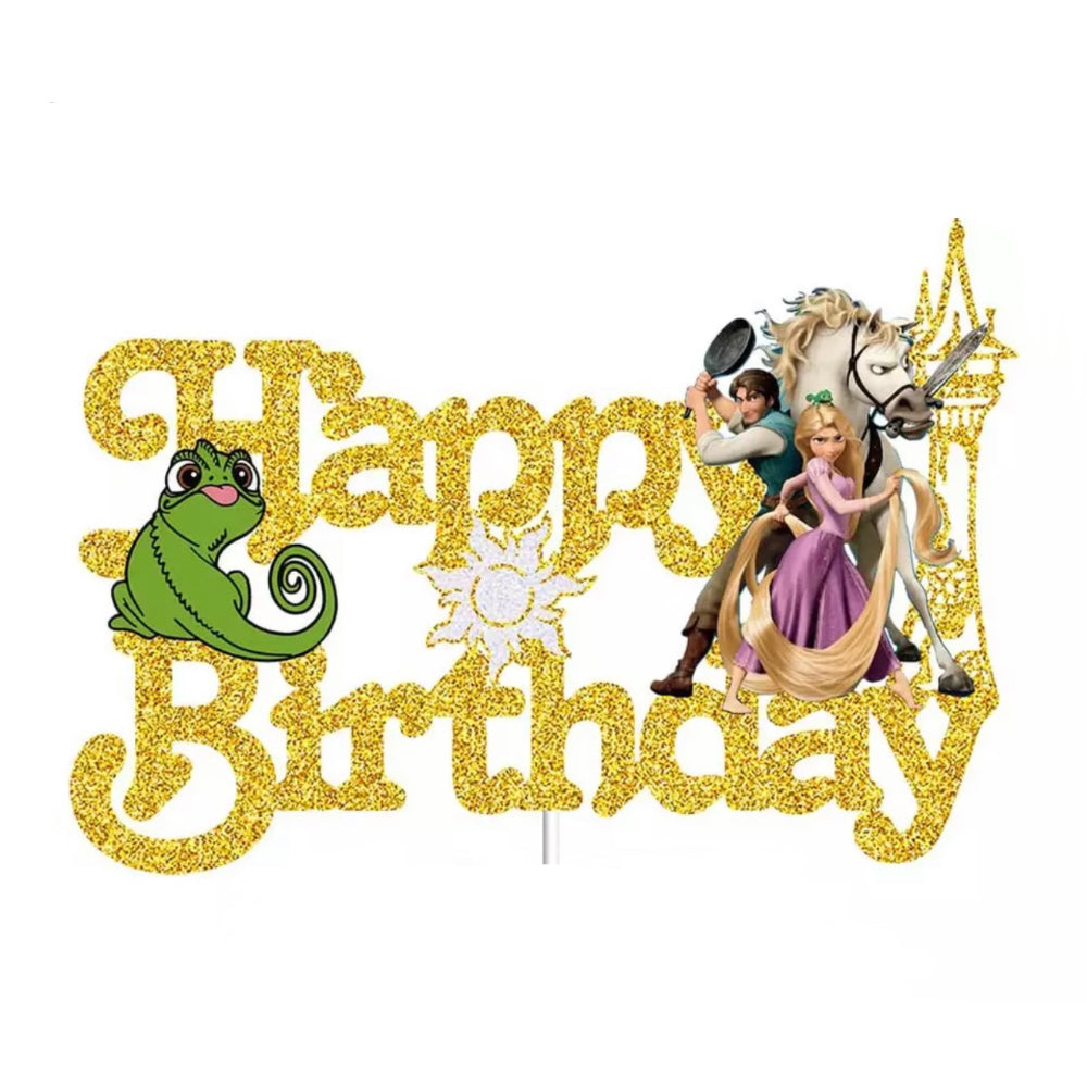 Happy Birthday Princess Rapunzel / Tangled Topper is a perfect decoration for celebration cakes. Made of thick cardboard and covered with sparkles to shine on Princess Happy Birthday Party.