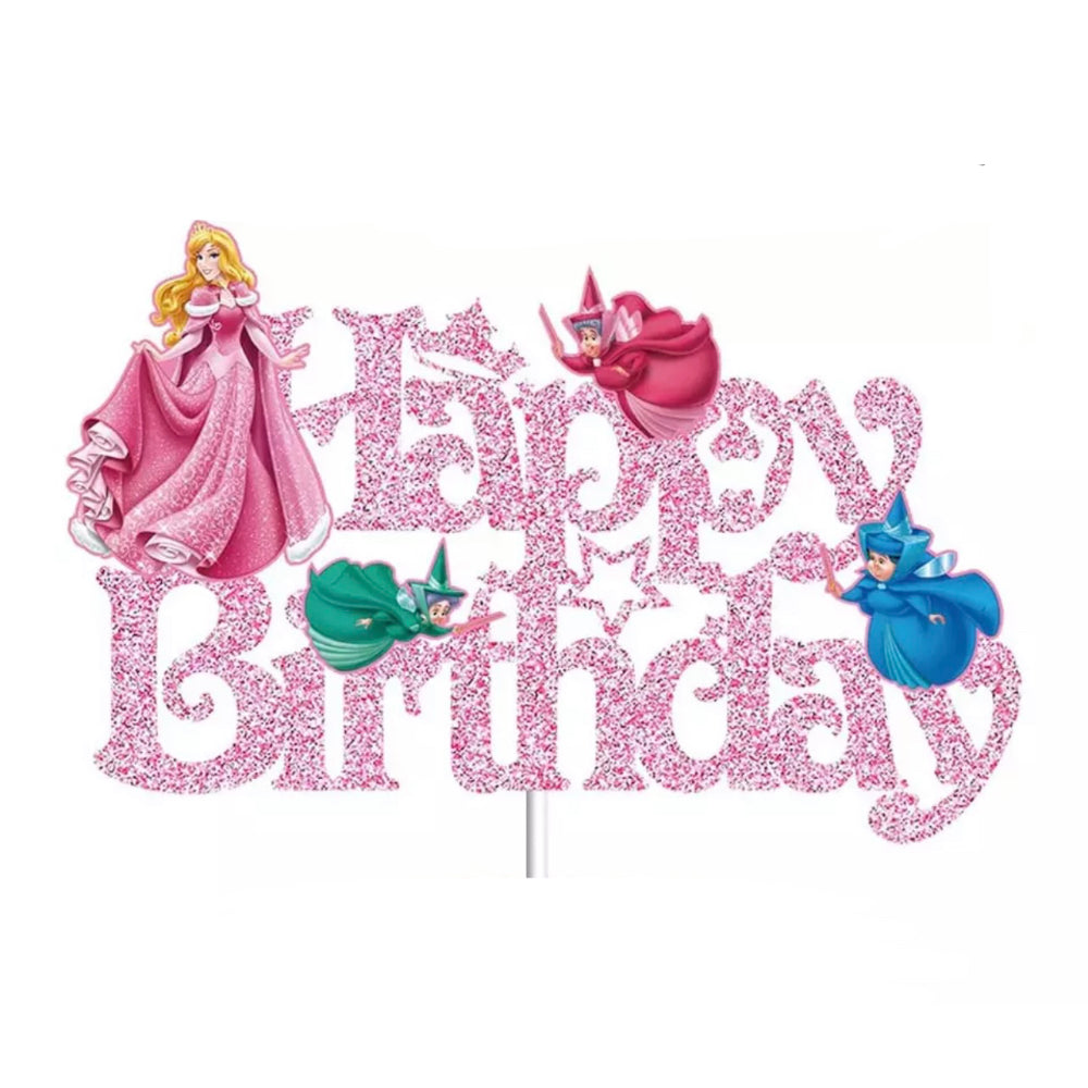 Happy Birthday Princess Topper is a perfect decoration for celebration cakes. Made of thick cardboard and covered with sparkles to shine on Princess Happy Birthday Party.