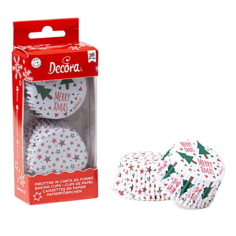 36 Baking cups that are very convenient for baking, presenting and giving muffins and sweets. Resistant up to 220° C. In baking paper. Packaged in a blister pack.