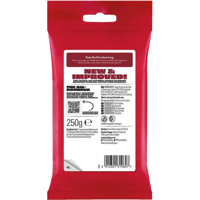 - Extra White : The Pro Extra White is specially formulated to be extra firm and extra elastic. It is suitable for hotter and more humid climates! This fondant has a firmer texture than standard Renshaw fondant. It has vanilla flavour. Ingredients: sugar, glucose syrup, palm oil, water, humectant: E422, emulsifier: E471, stabiliser: E413, E466, preservative: E202, natural flavouring. Expiry date: November -2024