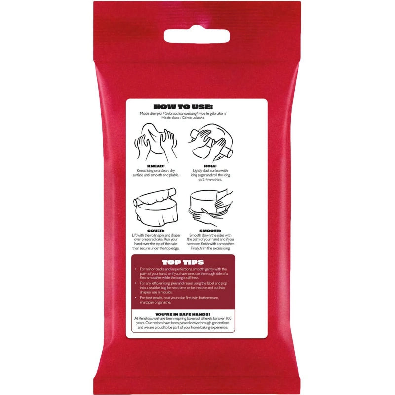 The Renshaw Fondant Icing is suitable for professionals and hobbyists alike. The rolled fondant can easily be manipulated to cover and decorate a variety of confectionery products, from wedding cakes to cupcakes and cookies. It can be used with cutters and moulds or hand-modelled into desired shapes and sizes. The fondant icing is easy to work with, directly out of the pack.