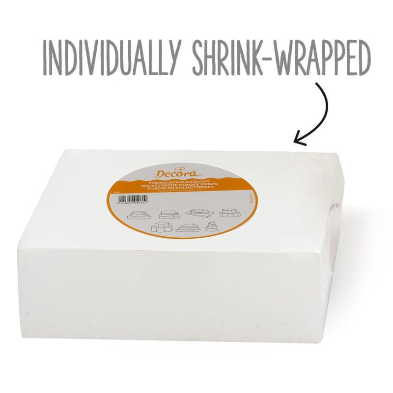 Polystyrene dummy bases are individually wrapped and ideal for creating large and high, multi-layered cakes. Simply create false layers with the square base and cover with sugar paste. Choose the perfect size or height from our selection of multiple options.