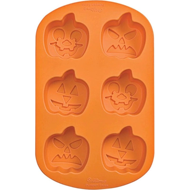 Bake fun Halloween treats with the Wilton Silicone Mould Jack-O-Lantern. Includes three different jack-o-lantern shapes ranging from scary to smiley and can be used for mini cakes, cookies, brownies, and more.